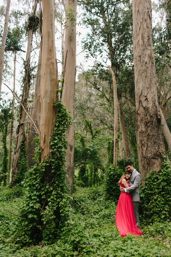 Ashley and Billy had a second small celebration in Southern California after their wedding and Ashley wore this beautiful red dress. Because it was a small post wedding reception, they didn’t need a photographer for the event, but for their one year anniversary they decided it was a great time to bring back that set of outfits. We paired everything with one of my favorite forest areas for a stunning, fairytale of a shoot.