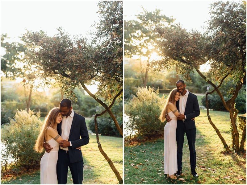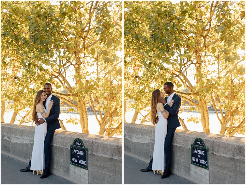 After we capture the sunrise over the city the the Eiffel Tower, we headed down towards the Seine. Paris’ famous river winds through the city nearby and during the Fall, when they eloped here, the banks were bright with gold leaves. I loved watching the morning light twinkle on the river water and the rustle of the leaves as a breeze blew through. Paris is always magical, but it’s fun to imagine that it’s the prettiest when you’re there (I think you’re bound to be always right… haha!); Paris in the Fall is a total dream come true.