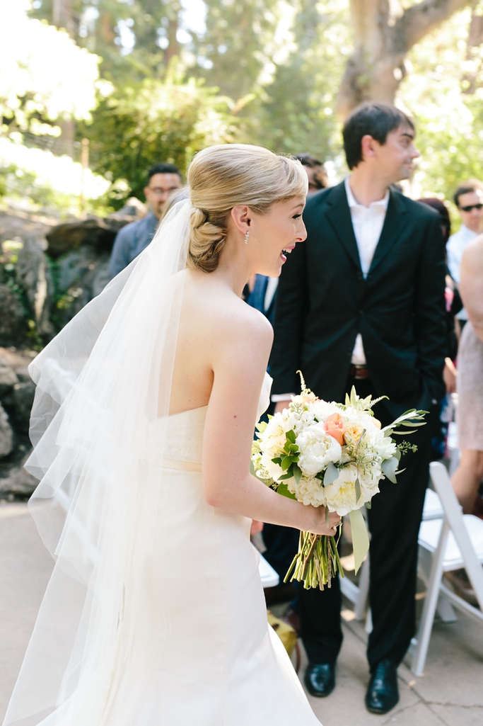 The Piedmont Community Hall really is a beautiful place for a wedding. This image of the ceremony site about sums it up – redwoods, oak trees, and pretty dappled sunlight. Love it!